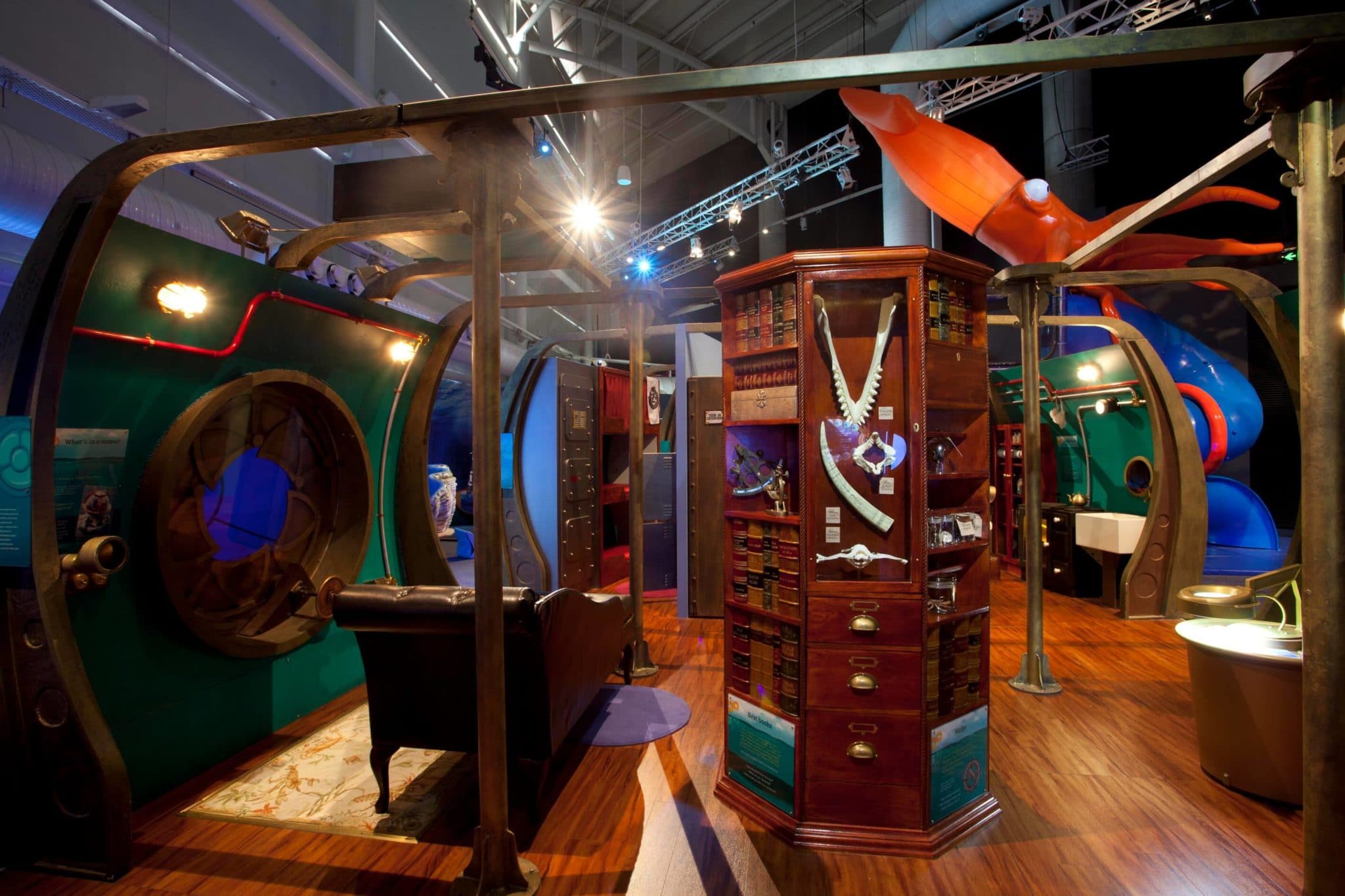 Based on Jules Verne’s 1870 classic, 20,000 Leagues Under the Sea, this traveling exhibition Voyage to the Deep – Underwater Adventures brings to life the deep-sea adventures of Captain Nemo, his fantastical Nautilus submarine, and the mythical world he inhabited.