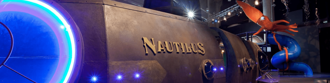 At the center of this fantasy world is the giant Nautilus where visitors can climb aboard and discover the inner workings of a deep-sea vessel. Take up the controls at the helm, look through periscopes, crank the propeller, test out the bunks, and explore Captain Nemo’s Cabinet of Curiosities, full of incredible marine specimens.