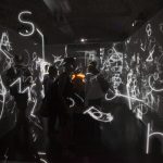 Strolling through a luxuriant digital space in, being able to touch algorithms, sense matter of light, contemplate inspired by poetry and natiure. Ten different installations to explore a vibrant and fleeting virtual environment generating dance and movement: Discrete collisions, Kinetic sand, Field of vectors, Abstract landscapes, Shifting clouds, Anamorphosis in space, Anamorphosis in time, Letter tree, Coincidence #1, Typographic organisms.