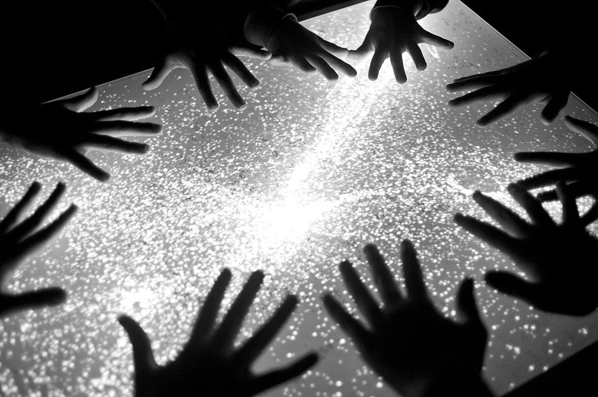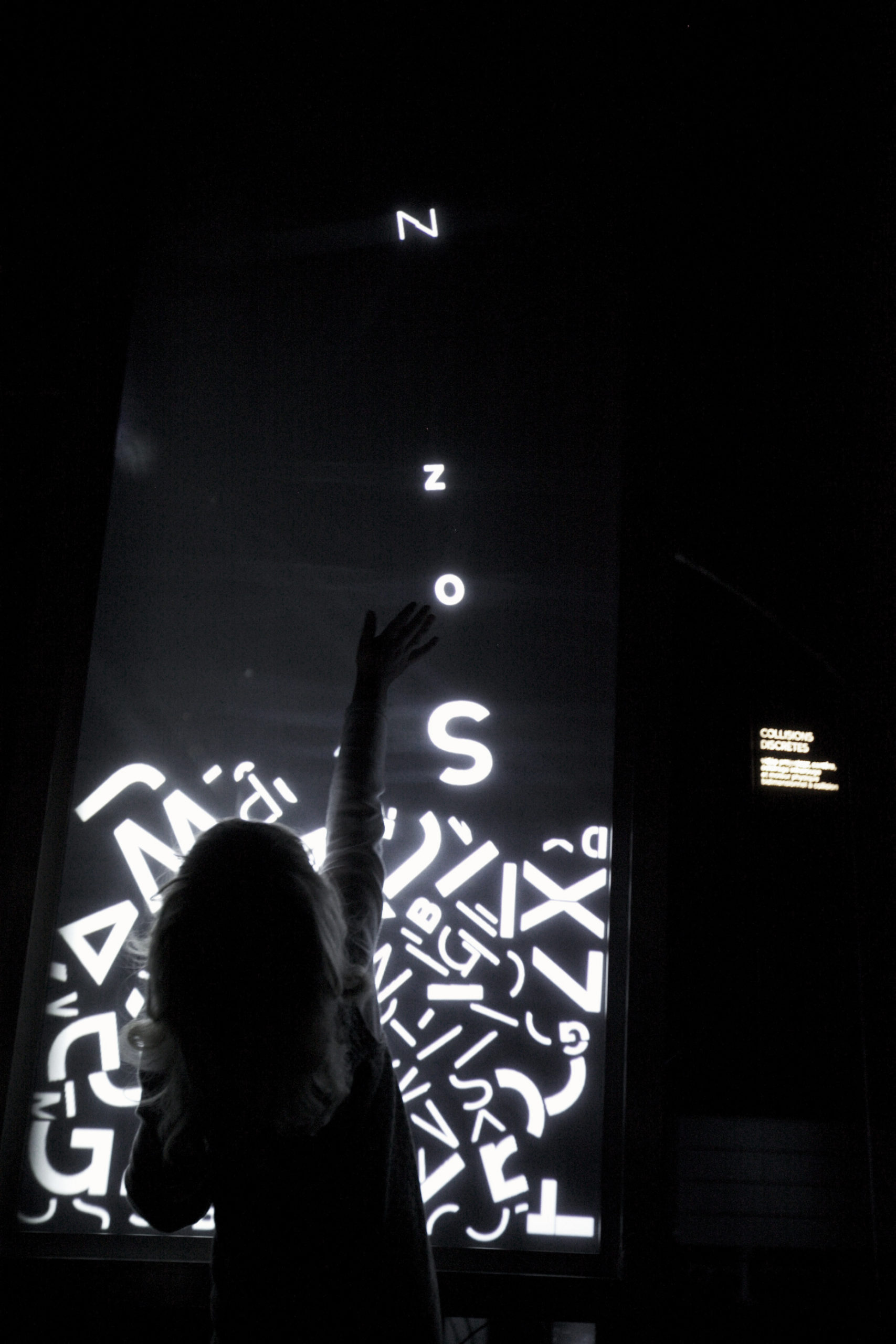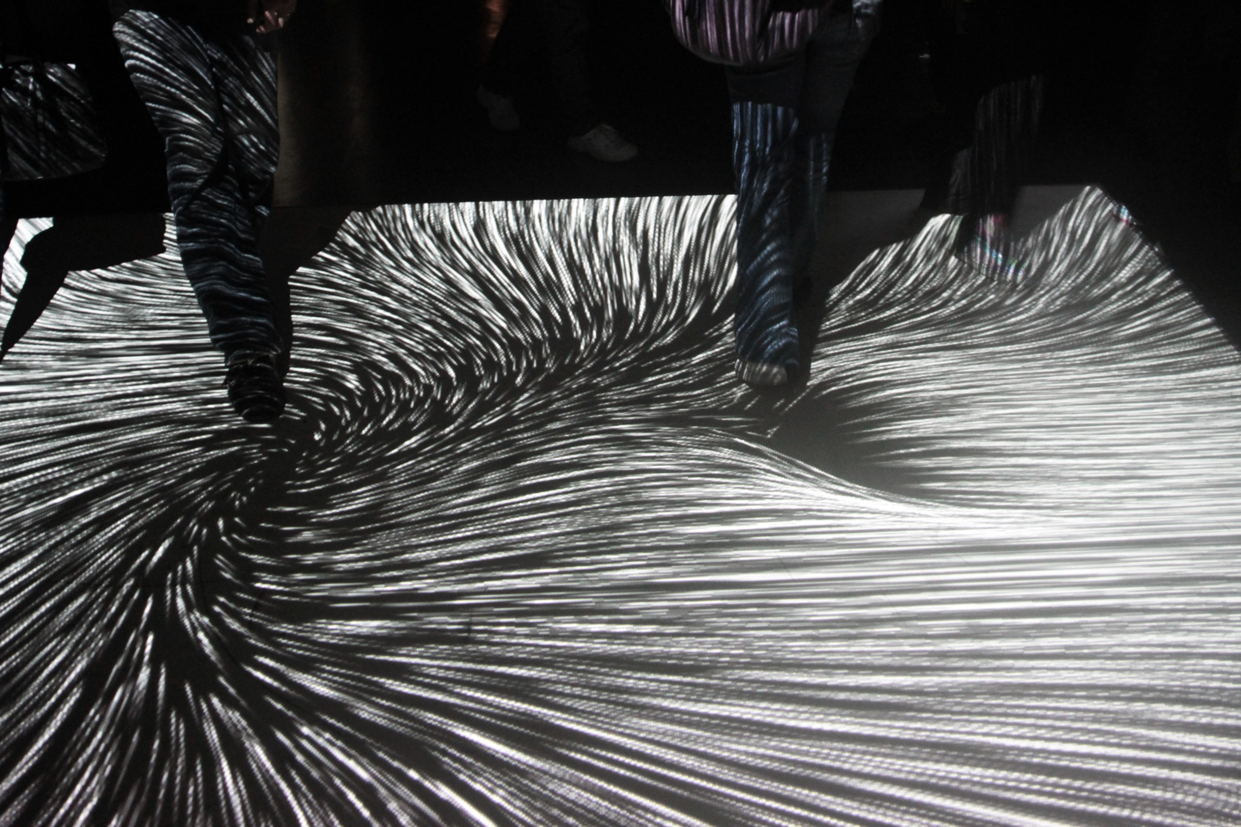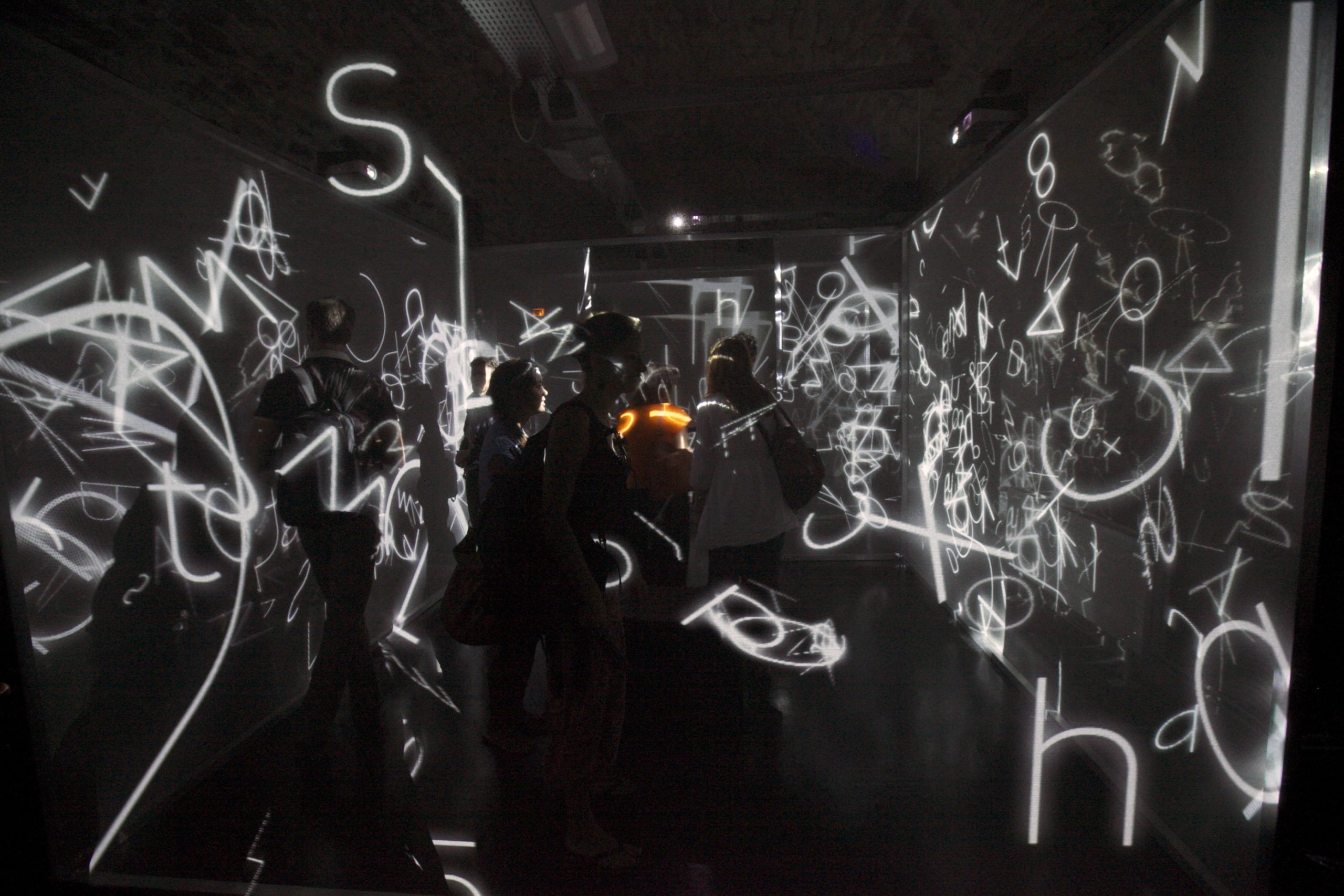 Strolling through a luxuriant digital space in, being able to touch algorithms, sense matter of light, contemplate inspired by poetry and natiure. Ten different installations to explore a vibrant and fleeting virtual environment generating dance and movement: Discrete collisions, Kinetic sand, Field of vectors, Abstract landscapes, Shifting clouds, Anamorphosis in space, Anamorphosis in time, Letter tree, Coincidence #1, Typographic organisms.