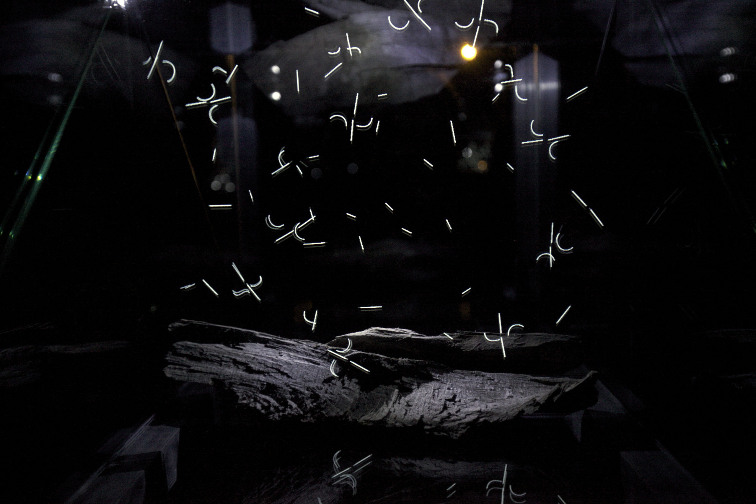 Audiences are invited to step into an imaginary territory of lines, dots and letters, a coincidence between geometry and organic, between material and immaterial, and explore in four dimensions: X (horizontal), Y (vertical), Z (depth), and T (time).